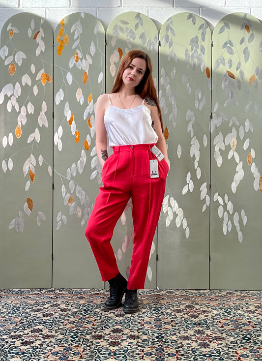 Vintage 1980s Deadstock Pink Linen Trousers, W29"