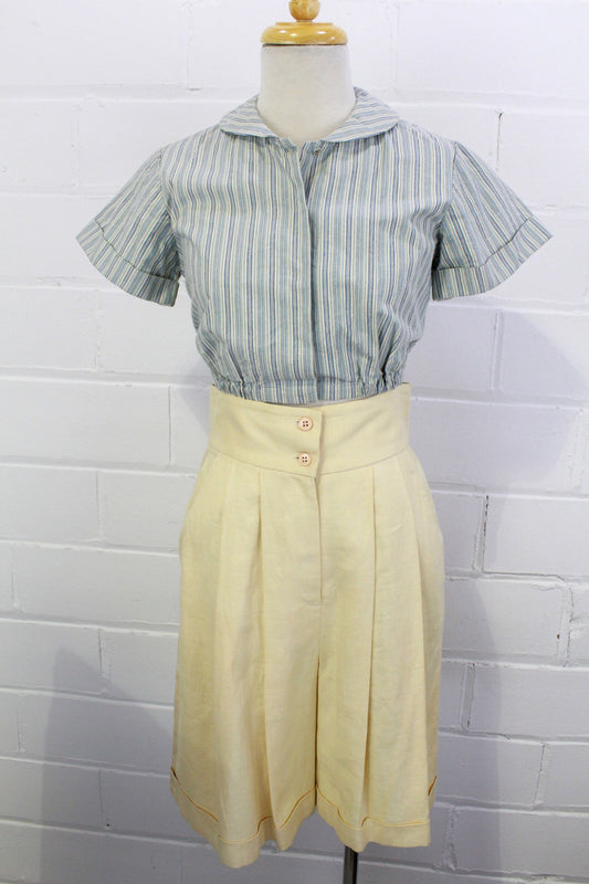 Vintage 1980s Cream Linen Bermuda Dress Shorts, Minimalist Business Casual Shorts, Size 27" Waist