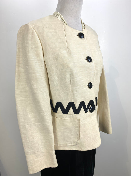 Vintage 1980s Women's Cream Linen/Cotton Etro Designer Blazer, Medium