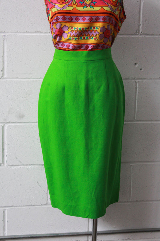 Vintage 1980s Bright Grass Green Pencil Skirt, Waist 28"