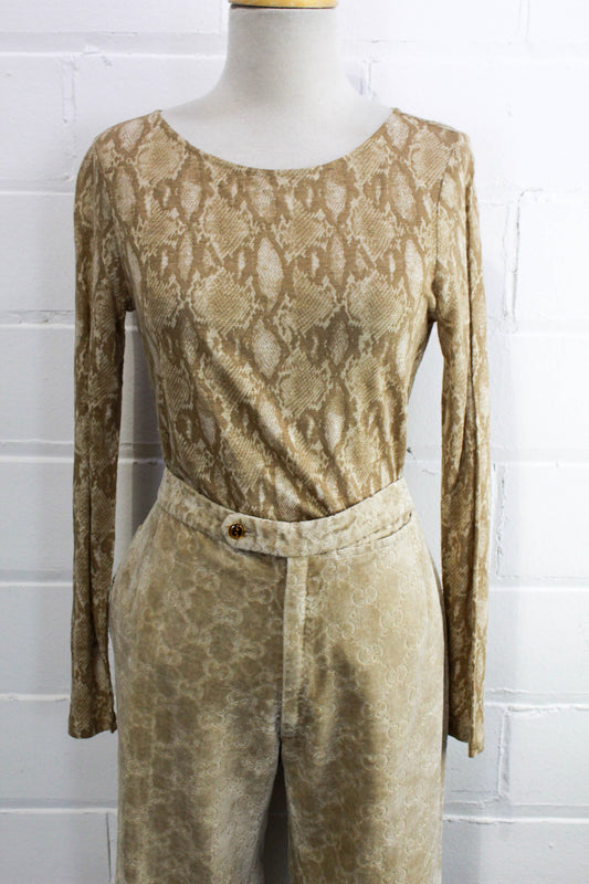 2000s Y2K Beige Snake Print Ralph Lauren Linen Top, Small