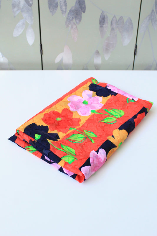 Vintage 1980s Semi Sheer Pink/Orange/Red/Black Large Floral Fabric, 3.3 Yards