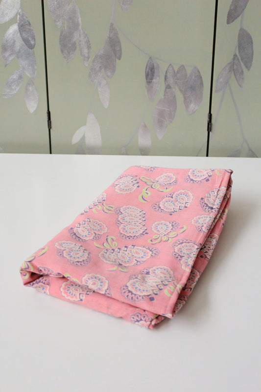 Vintage 1940s Pink And Green Paisley Flower Cotton Duvet Cover 72" X 65", 1940s Fabric