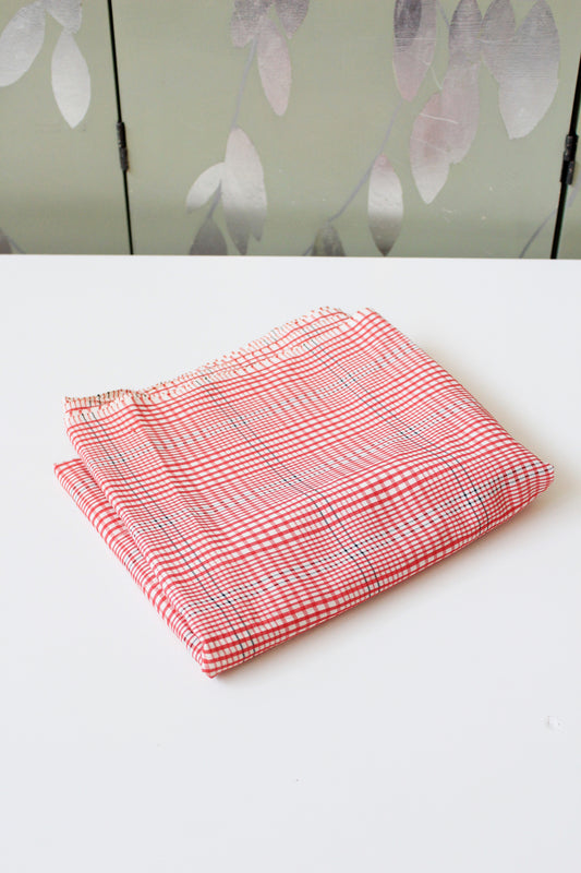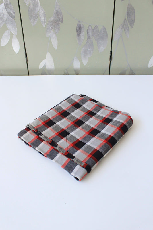 Vintage 1950s Red And Grey Plaid Cotton Sewing Fabric, 4.4 Yards