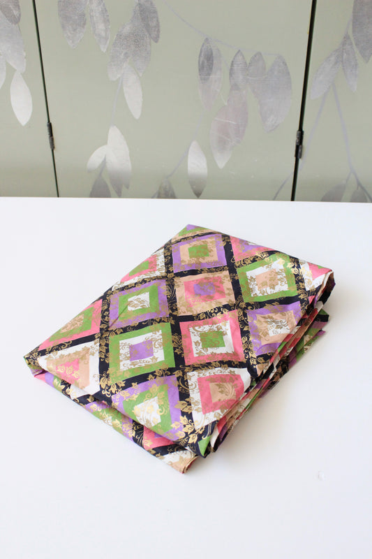 1960s Colourful Geometric Diamond Print Fabric Pink/Green/Purple, 1.6 Yards / 4.1 Yards