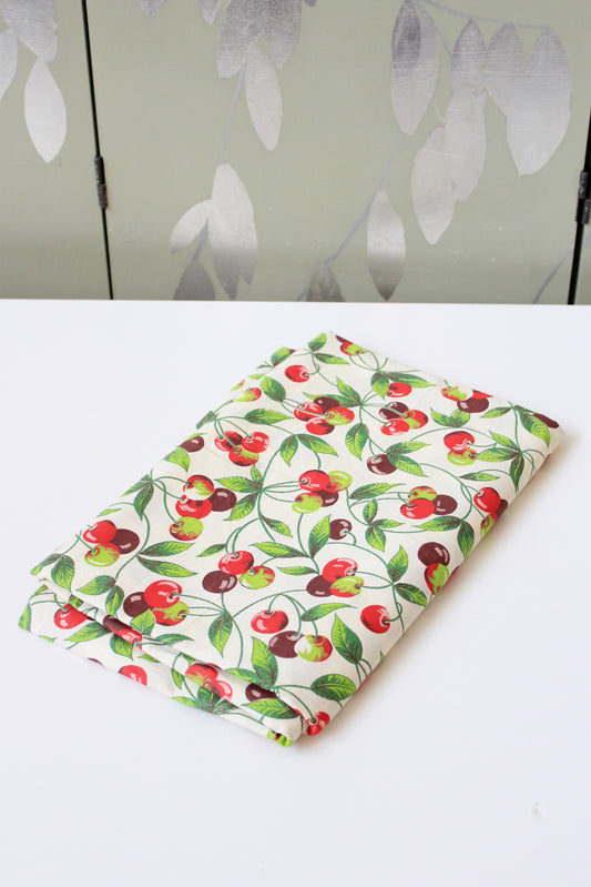 1950s Novelty Red And Burgundy Cherry Fruit Print Cotton Vintage Fabric, 5.1 Yards