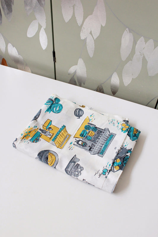 Vintage 1960s Blue/White/Yellow Cotton Fruit Stand Novelty Fabric, 2.5 Yards
