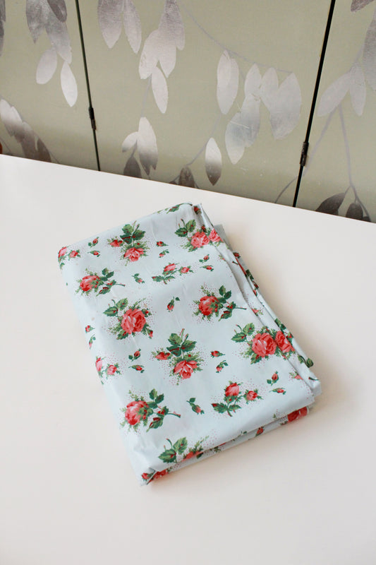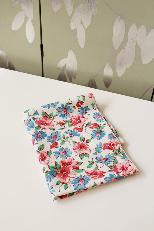 Vintage 1950s Pink And Blue Floral Cotton Sewing Fabric, 3.5 Yards