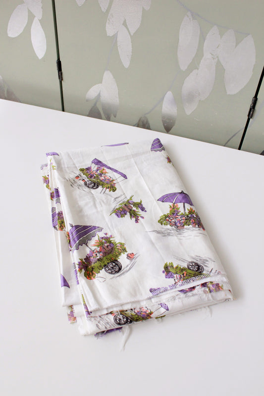 Vintage 1960s Flower Cart Novelty Cotton Fabric, 2.8 Yards