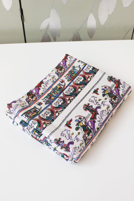 Vintage 1970s Roman Horse And Buggy Cotton Fabric, 6.4 Yards