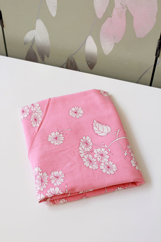 Vintage 1950s Pink And White Flower Cotton Feed Sack