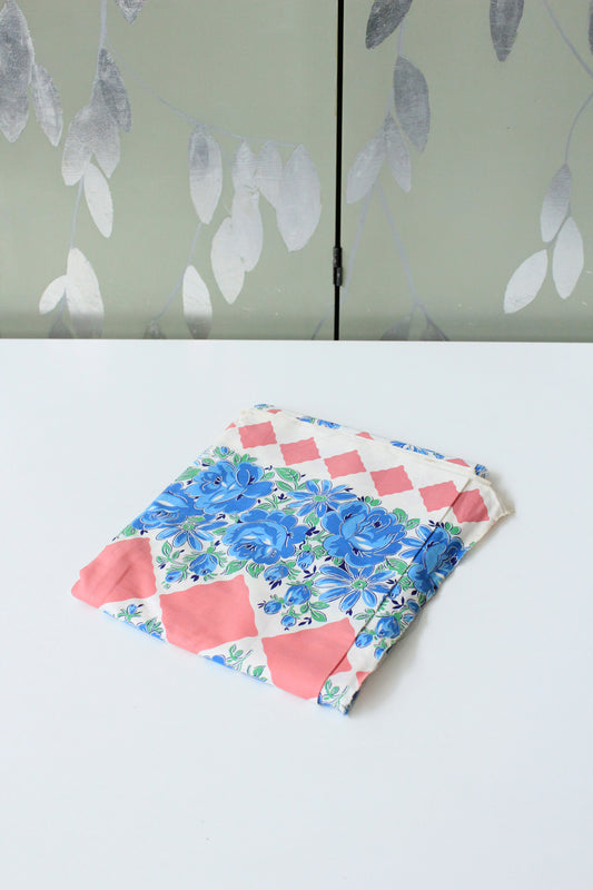 Vintage 1950s Pink Checkered With Blue Flowers Cotton Border Print, 4.1 Yards