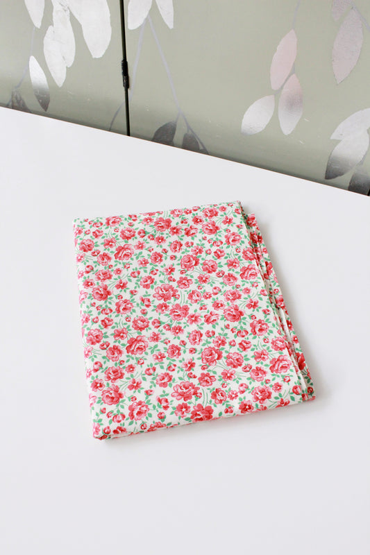 Vintage 1960s White/Red/Green Small Floral Cotton Fabric, 3.6 Yards
