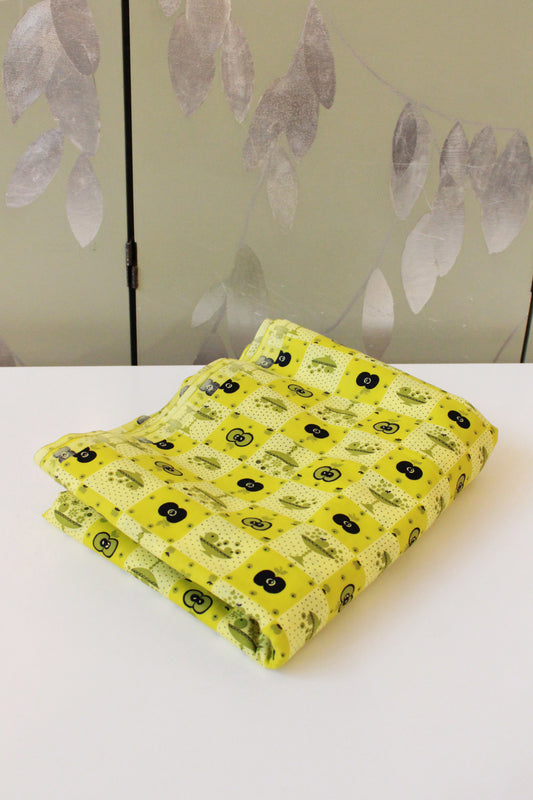 Vintage 1970s Lime Green Checkered Fruit Cotton Fabric, 8.5 Yards