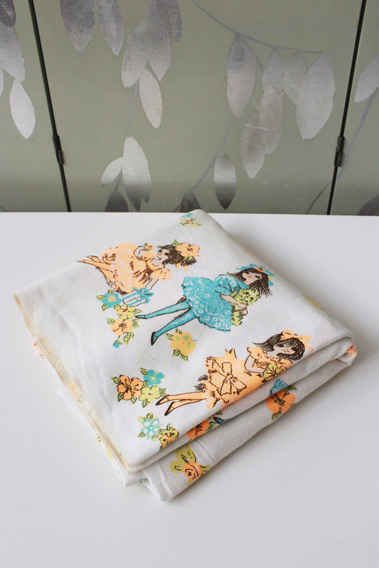 Vintage 1970s Neon Flower Girls Border Print, 3.6 Yards
