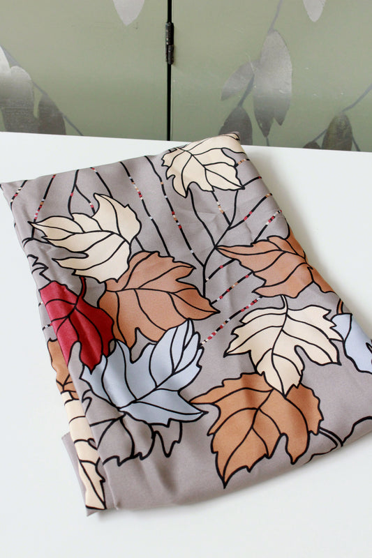 Vintage 1980s Taupe Autumnal Leaf Border Print 3.7 Yards