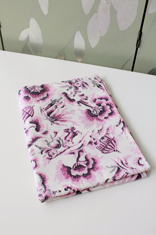 Vintage 1960s/70s Purple Flowers With Old Time Carriage Ride Cotton Fabric, 2.5 Yards