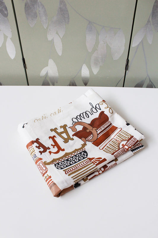 Vintage 1970s Cafe Espresso Border Print Sewing Fabric, 5.1 Yards