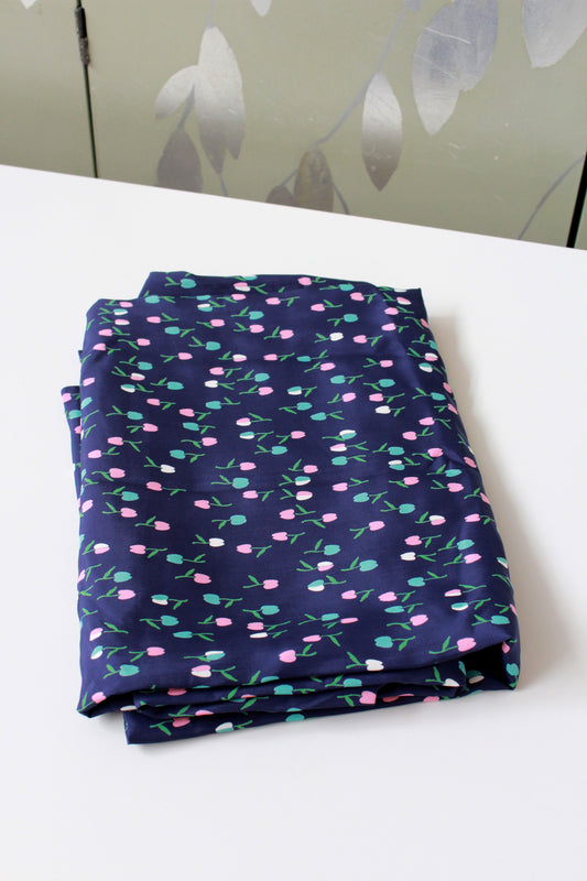 Vintage 1940s Rayon In Navy With Pastel Tulips, 4.5 Yards