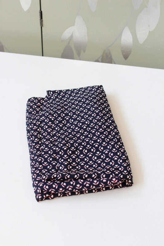 Vintage 1940s Rayon Fabric In Navy Blue With White Hearts, 4.4 Yards