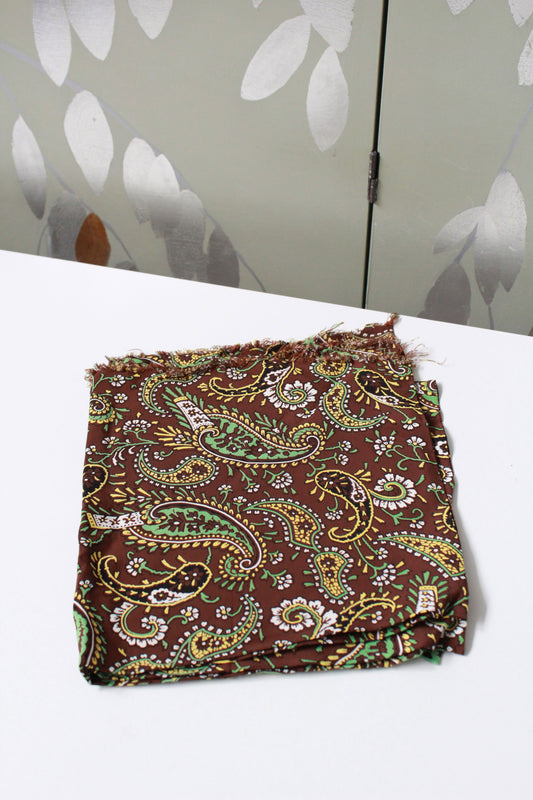 Vintage 1940 Rayon In Brown With Yellow And Green Paisley, 1 Yard