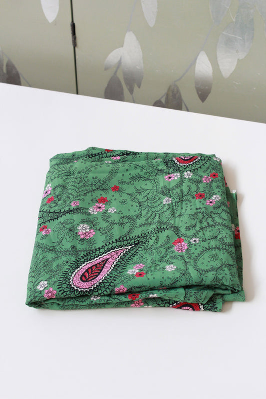 Vintage 1940s Paisley Rayon In Green And Pink Tones, 4.3 yards