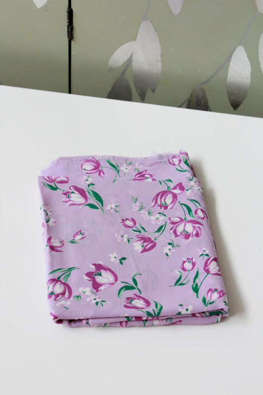 Vintage 1940s Purple Tulip Print Rayon, 2.1 Yards