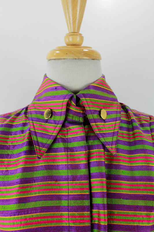 Vintage 80s Guy Laroche Pink Silk Striped Blouse, Large