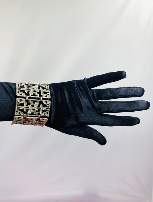 Vintage Taxco Sterling Silver Blue Glass Panel Bracelet