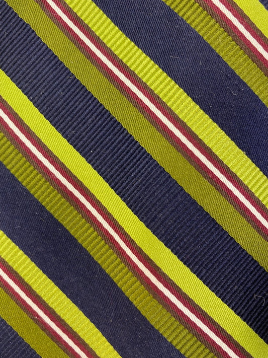 90s Deadstock Silk Necktie, Men's Vintage Green/ Navy/ Wine Regimental Stripe Pattern Tie, NOS