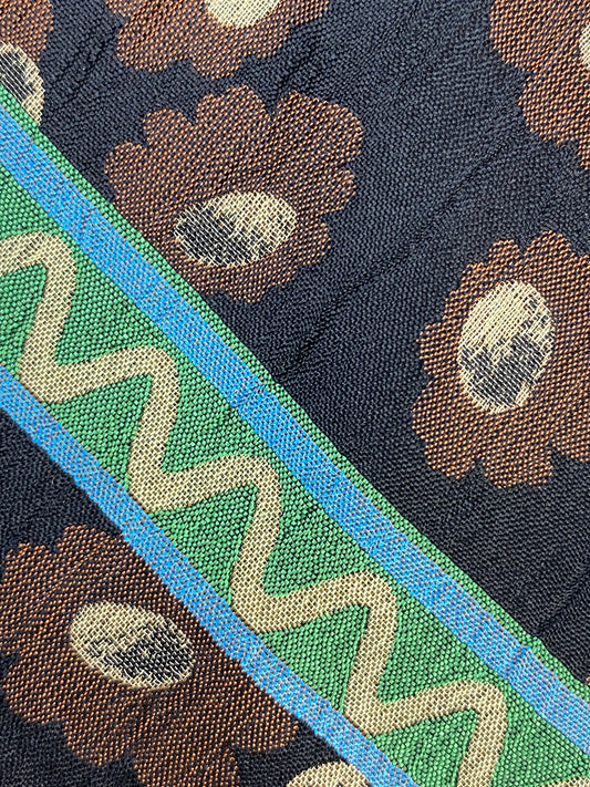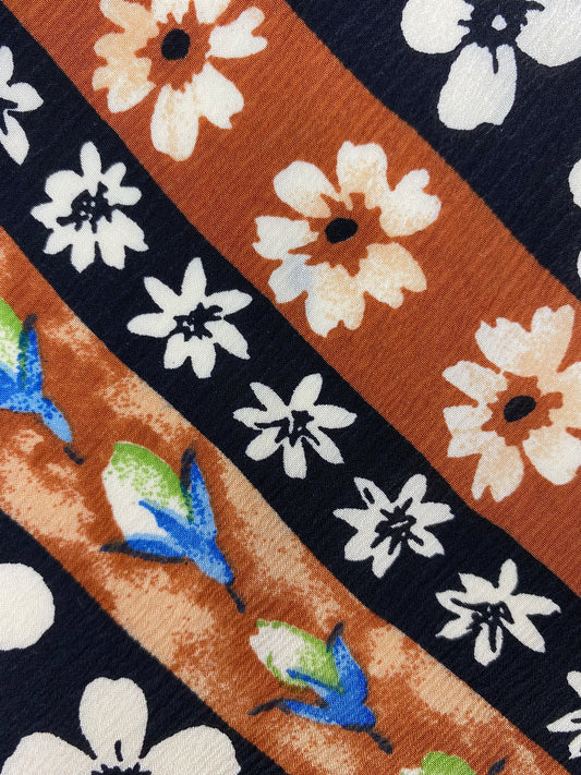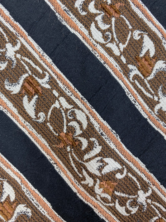 90s Deadstock Silk Necktie, Men's Vintage Brown/ Black Diagonal Stripe Floral Pattern Tie, NOS