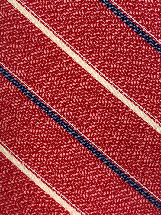 90s Deadstock Silk Necktie, Men's Vintage Red/Pink Diagonal Repp Stripe Pattern Tie, NOS