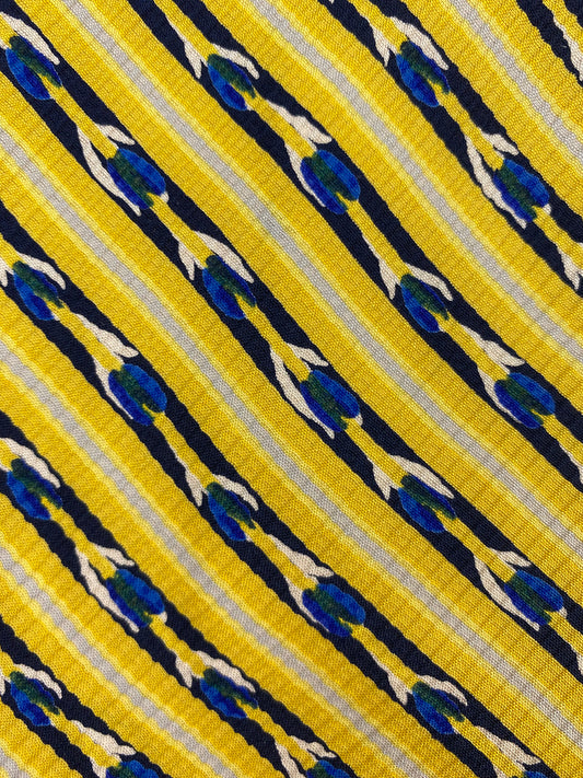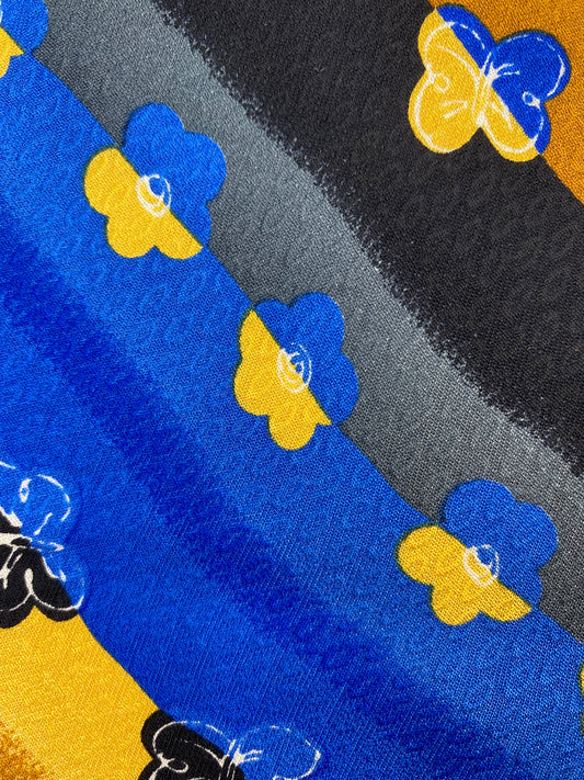 90s Deadstock Silk Necktie, Men's Vintage Gold/Blue/Black Diagonal Stripe Floral Butterfly Pattern Tie, NOS