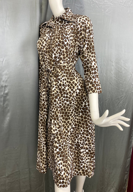 Vintage 1970s Leopard Print Poly Dress with Belt, Large
