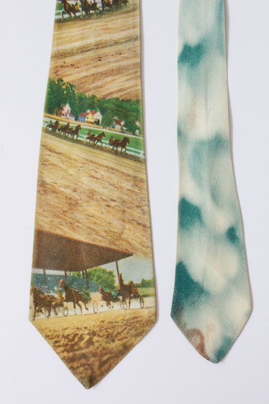 Vintage 1950s Rayon Horse Race Photo Print Tie, Mid Century