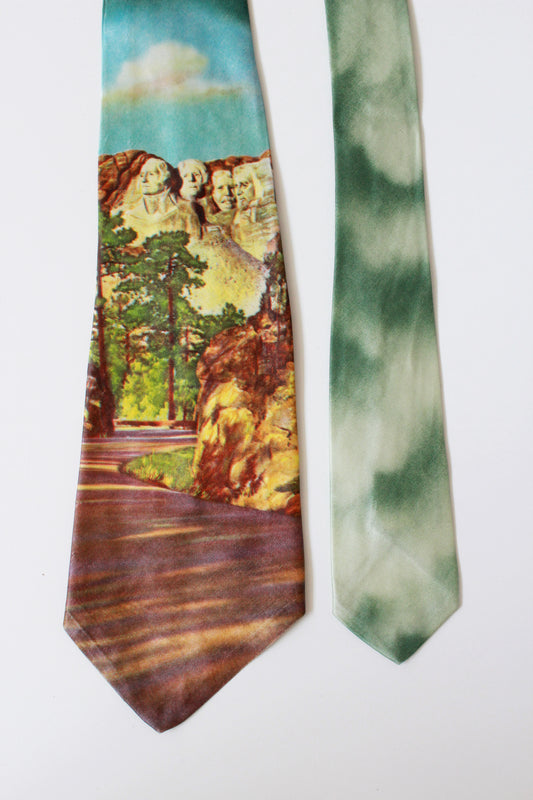 Vintage 1950s Mount Rushmore Photo Print Rayon Tie, Mid Century
