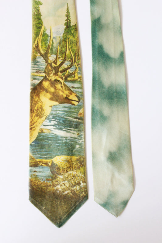 Vintage 1950s Yellow Deer Head Photo Print Tie In Rayon, Mid Century