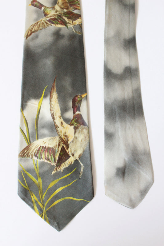 Vintage 1950s Grey Duck Rayon Photo Tie, Mid Century