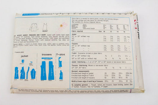 Vintage 1970s Women's Jacket/ Trousers/ T-shirt Sewing Pattern, Style 3655, Wide Leg Pants Pattern, Uncut/ Complete, Bust 34"