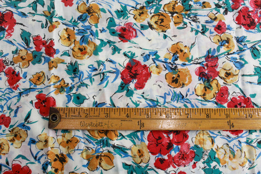 1940s Floral Print Cotton, 4.9 Yards, Vintage Painterly Flower Print
