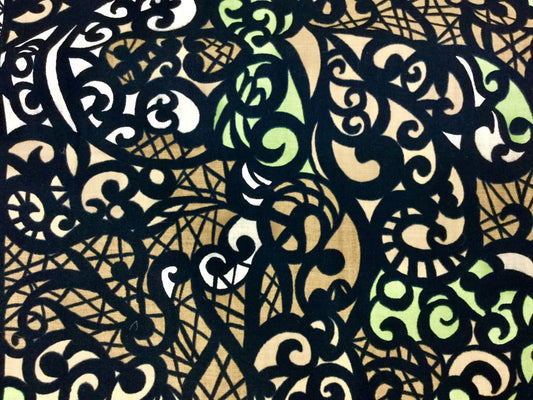 Vintage 50s Brown & Green Abstract Print Cotton Fabric, 6+ yrd