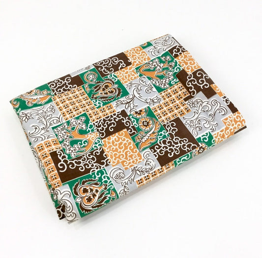Vintage 1940s Brown & Green Novelty Patchwork Print Cotton Fabric, 4+ yrd