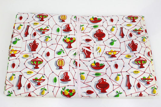 Vintage 50s/60s Fruit & Vase Novelty Print Cotton Fabric, 9+ yrd