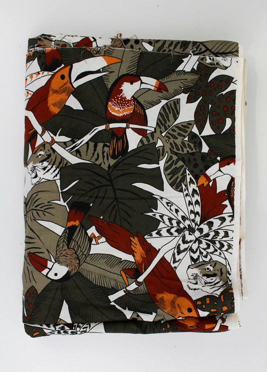 Vintage Tropical Jungle Print Cotton Fabric, Scwartz Liebman, 6 yrd