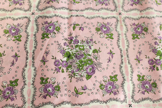 1950s Pink Floral Print Cotton Fabric, 4.9 Yards