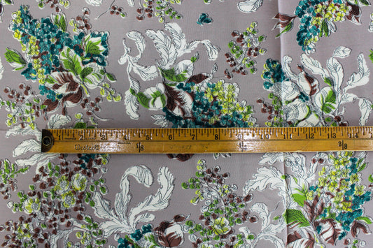 Vintage 1950s Rayon Fabric in Pale Lavender and Brown Tones, 4.4 Yards