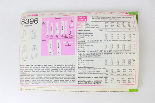 1960s Jumper and Pants Sewing Pattern Simplicity 8396, Bust 34, Complete