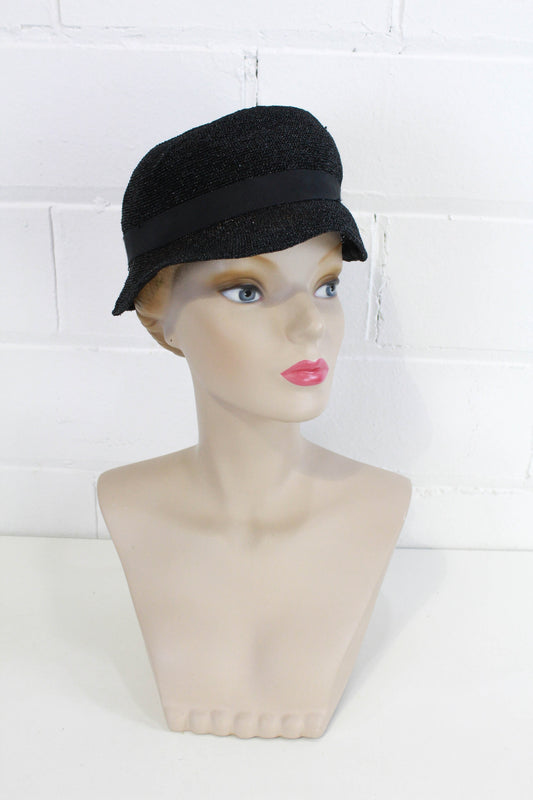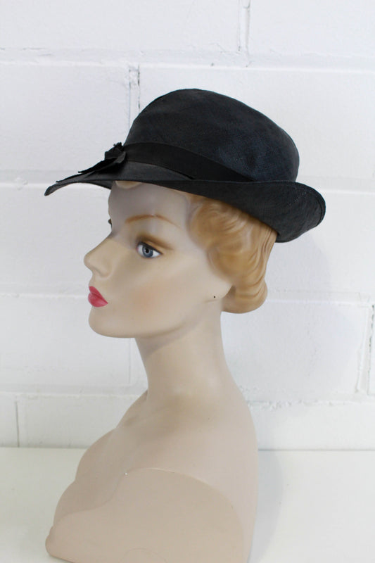 1930s Black Horsehair Metallic Women's Hat, Short Brim