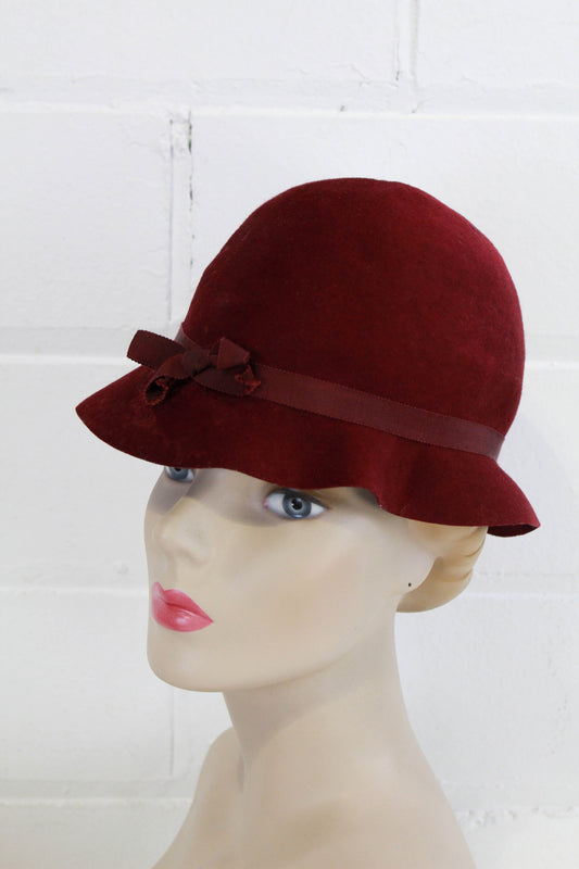 1930s Wool Cloche Hat with Blocked Dome Crown, 3 Diamonds of Peach Bloom Felt