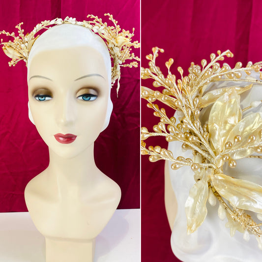 Vintage 20s/30s Ivory Pearl Droplet & Leaf Bridal Crown, Orange Blossom Headpiece